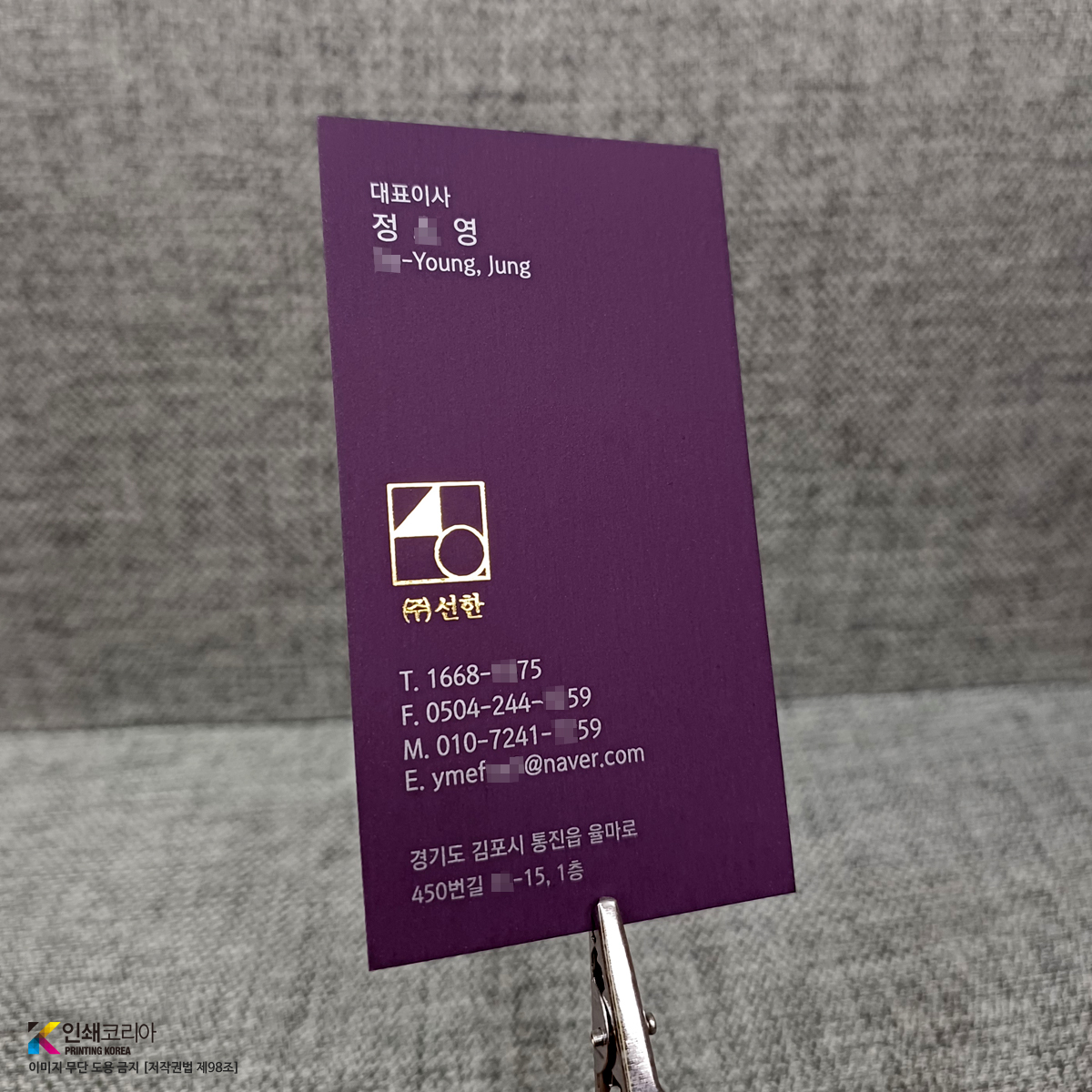 [보라색 색지, 플라이크 퍼플, 주식회사 선한, 금박 명함 제작], [개인명함, 플라이크퍼플, 은박 귀도리 명함], [보라색명함, 플라이크 퍼플, 귀도리, 먹박 명함 제작], [팝 소프라노 전문 연주자, 플라이크 퍼플 명함, 유광금박후가공], [강남구, BLESS MOON, 마케팅 회사, 플라이크 보라색색지 명함, 귀도리후가공] |