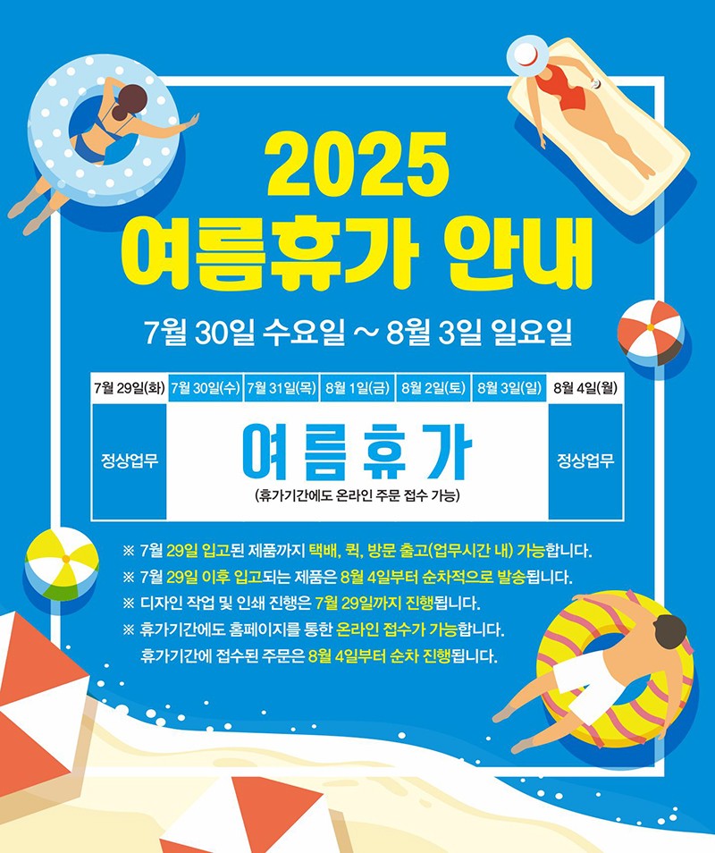 주문제작 특성상 입금확인 후 디자인 및 인쇄가 진행됩니다.