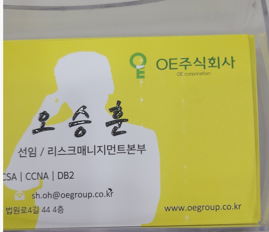 -명함 상태 : 명함 오른쪽 부분에 흰색 점들이 찍여있습니다. 확인해보니 1~2장만 그런 것이 아니라 전체가 그렇습니다