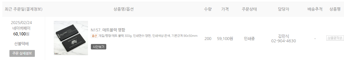 2월24일에 매트블랙 청박명함주문했는데 언제 택배발송되나요?? 일주일넘었는데요;;;